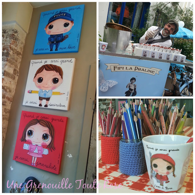 On s'est amusée à faire du coloriage avec ma grenouille tout en mangeant des pralines à l'ancienne. J'ai également pu découvrir plus amplement l’œuvre de la créatrice et les nouveaux modèles qui seront prochainement disponibles. Ceux de la photo on été inspirés des évènements de janvier et montre son engagement.